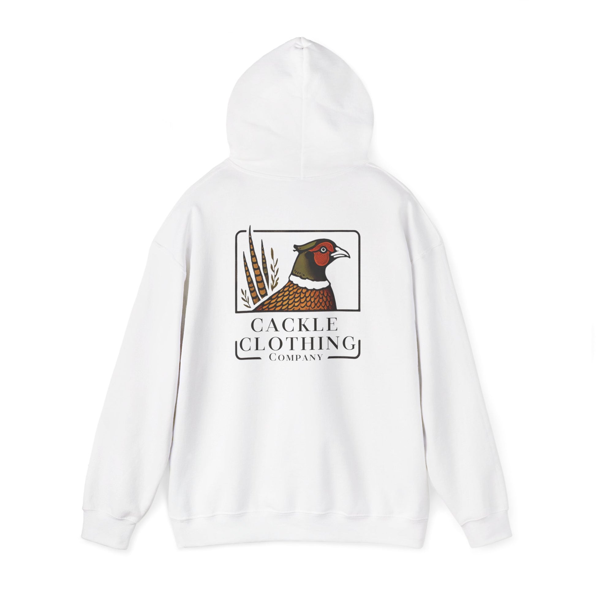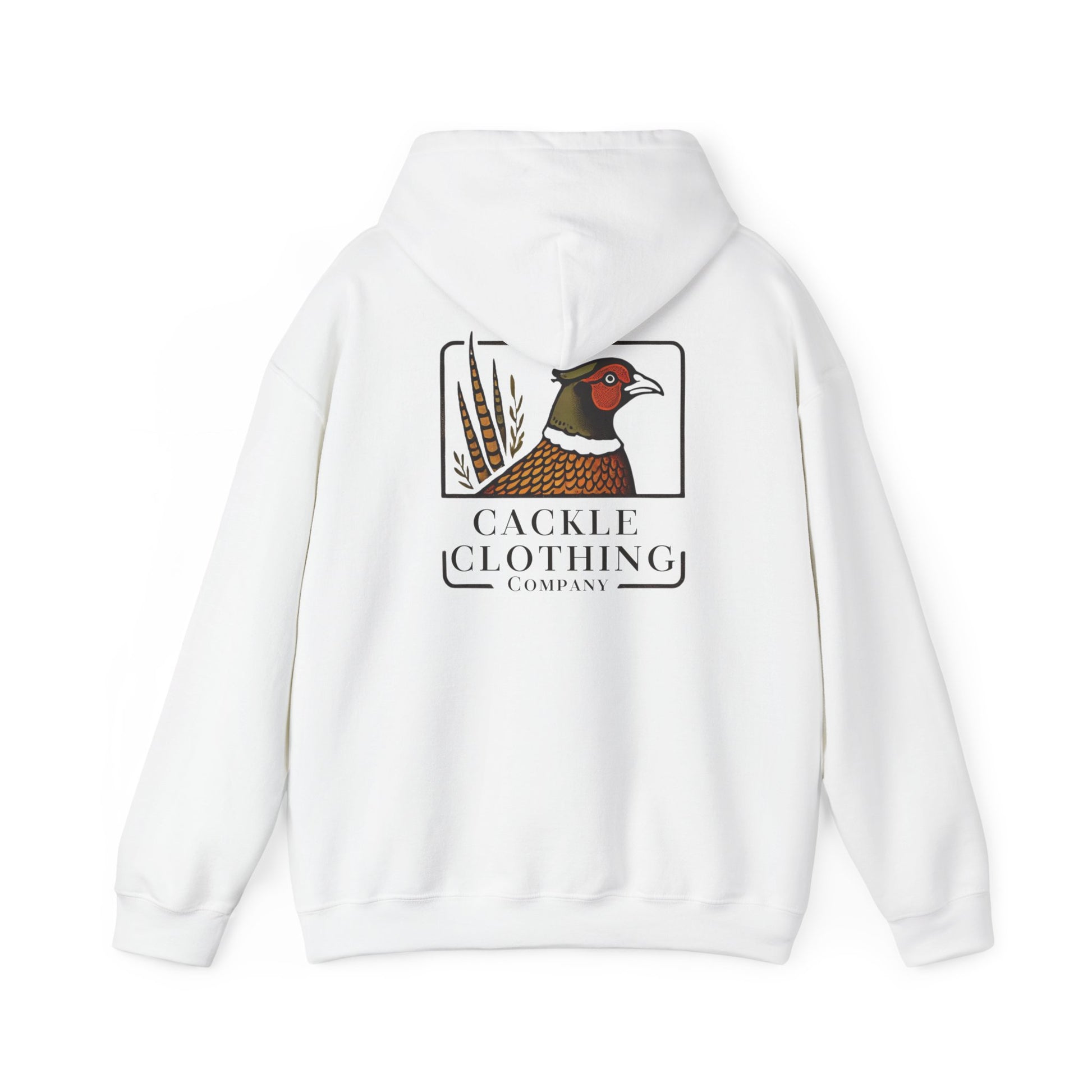 A pheasant hunting hoodie with a clean and simple design, perfect for hanging out or going hunting. This cozy and warm hoodie is ideal for outdoor activities and casual wear. Target audience includes hunting enthusiasts and outdoor lovers. Relevant for hunting season, outdoor adventures, and casual outings.