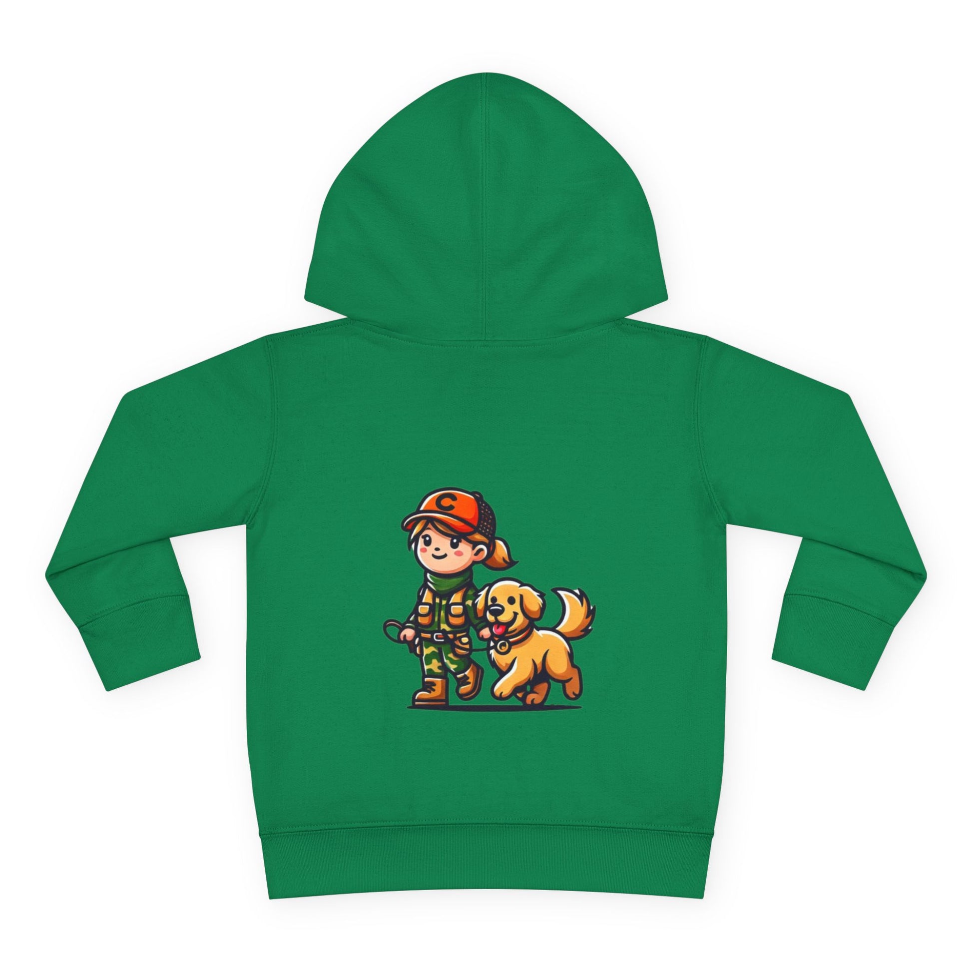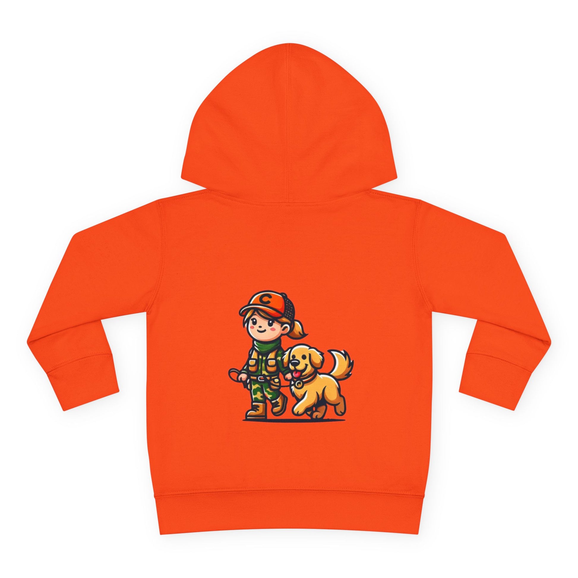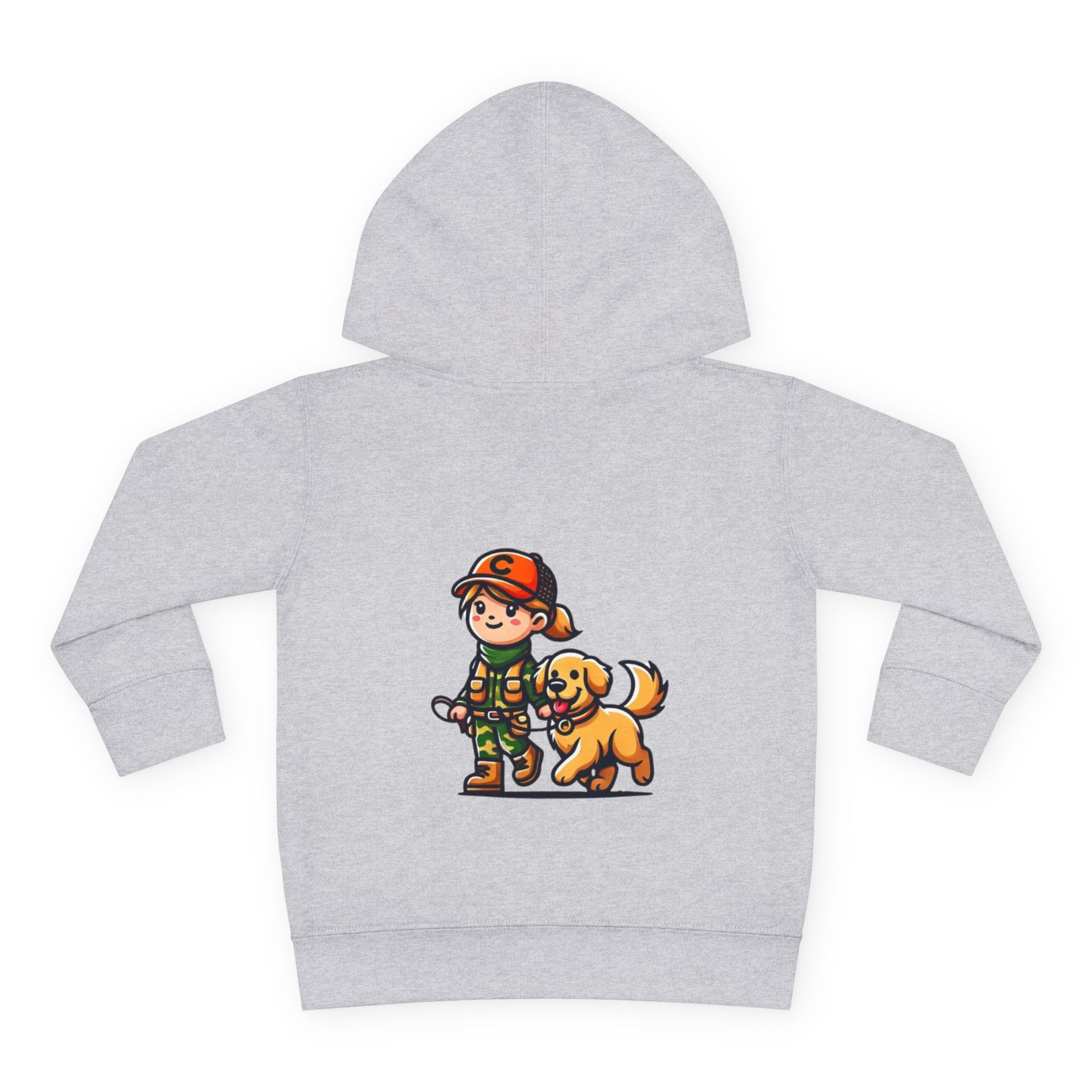 A cozy toddler pullover fleece hoodie featuring a cute design of a girl and her dog. This hoodie gives off a warm and playful vibe, perfect for little ones who love animals. Ideal for everyday wear, playdates, and casual outings. Great for gifting on birthdays, holidays, or as a special treat.