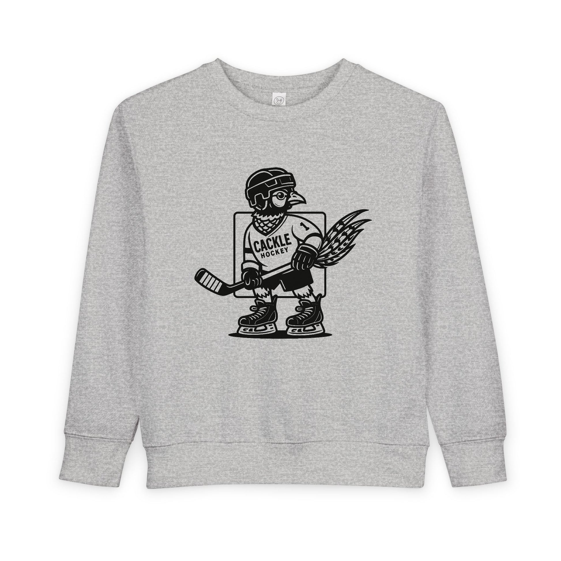 This cozy toddler sweatshirt brings playful spirit to winter hockey weather days. Soft, medium-weight fleece holds a bold, vintage-style mascot print that reads like a tiny team crest — a little pheasant clutching a hockey stick, ready for the outdoor rink. The neutral heathered fabric gives a lived-in, effortless look that layers well under jackets or over tees. Built with comfort-first details like an Easy Tear™ label and stretch ribbed cuffs, it moves with active little ones while staying comfortably warm.
